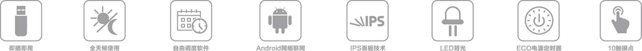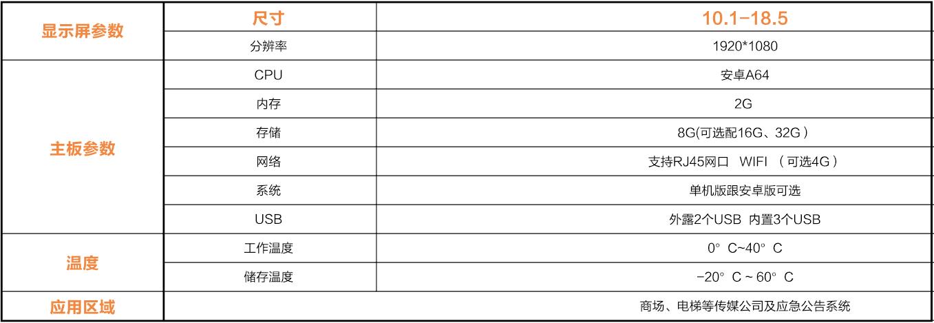 超薄機(jī)身;質(zhì)感拉絲金屬;高清畫(huà)質(zhì);觸摸極速反應(yīng);智能分屏;智能遠(yuǎn)程信息發(fā)布;可定時(shí)開(kāi)關(guān)機(jī);提前設(shè)定節(jié)目源;鋼化玻璃屏幕;可定制專(zhuān)屬LOGO、多種顏色、尺寸可選。